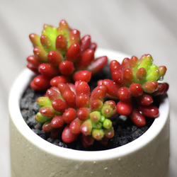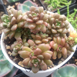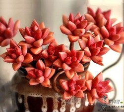 也叫小玉,小型的肉肉品種,蓮花狀葉盤,溫差大的時候會呈現(xiàn)出暗紅色,春季開黃色花。和大部分景天科肉肉一樣,它也喜歡長光照。春秋季為生長期,夏季溫度超過35度會進入深度休眠,冬季低于5度要逐漸斷水。冬季光照充足能耐0度低溫。很容易繁殖的品種,一般砍頭、扦插、葉插。